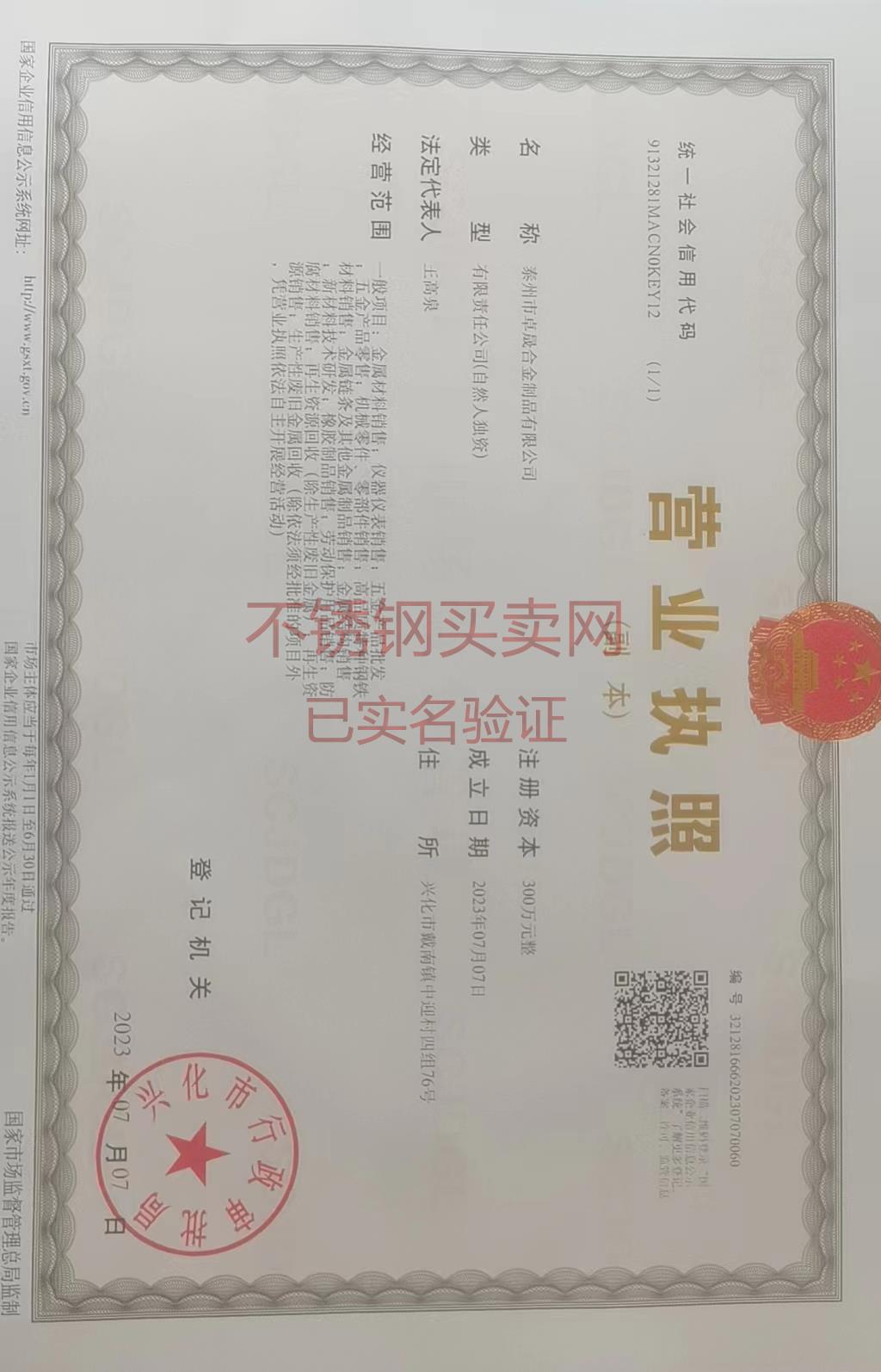 公司簡稱: 卓晟合金 營業執照:
