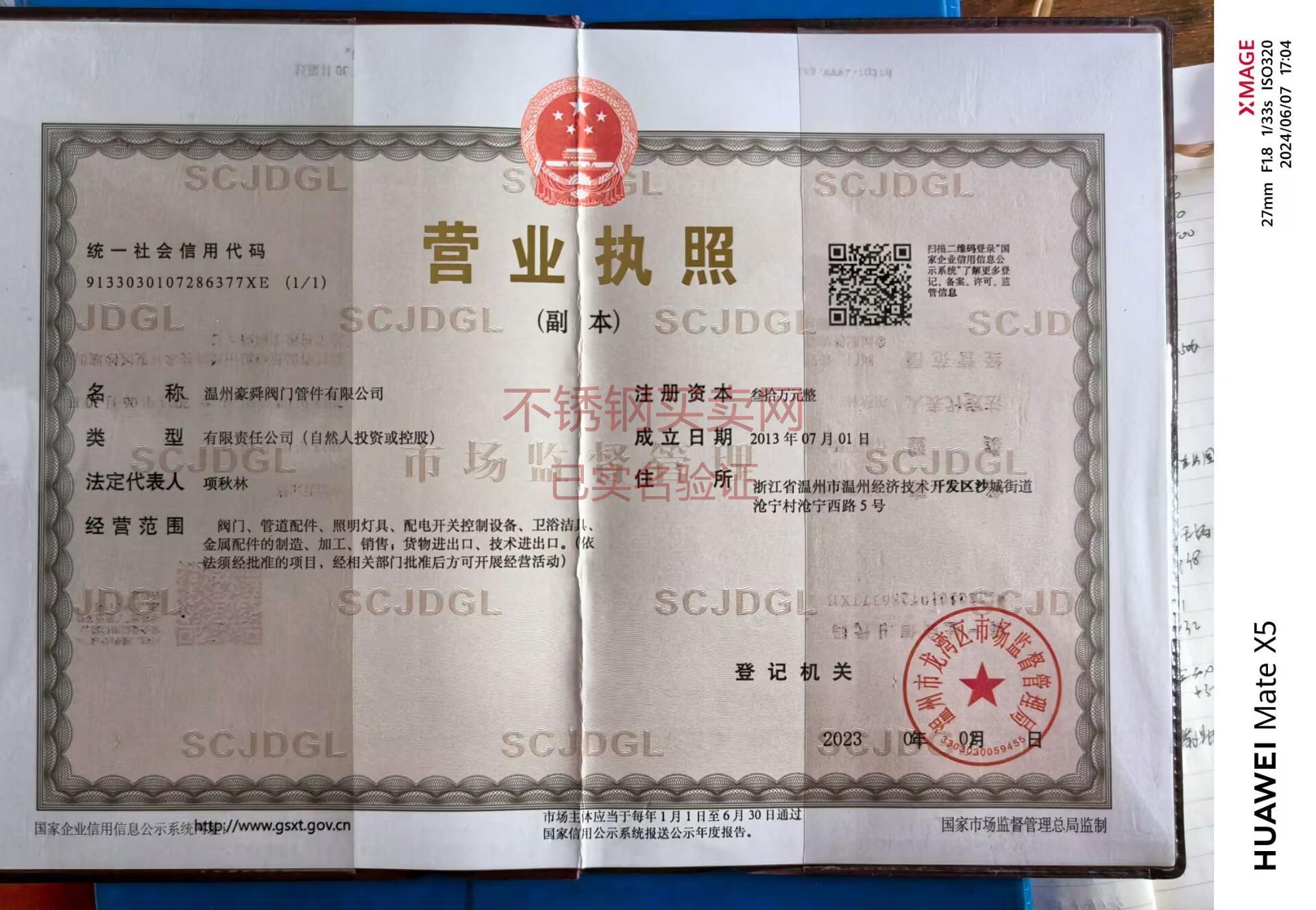 溫州豪舜閥門管件有限公司 地址:浙江省-溫州市龍灣區(qū)沙城街道滄寧村滄寧西路5-2號(hào)
