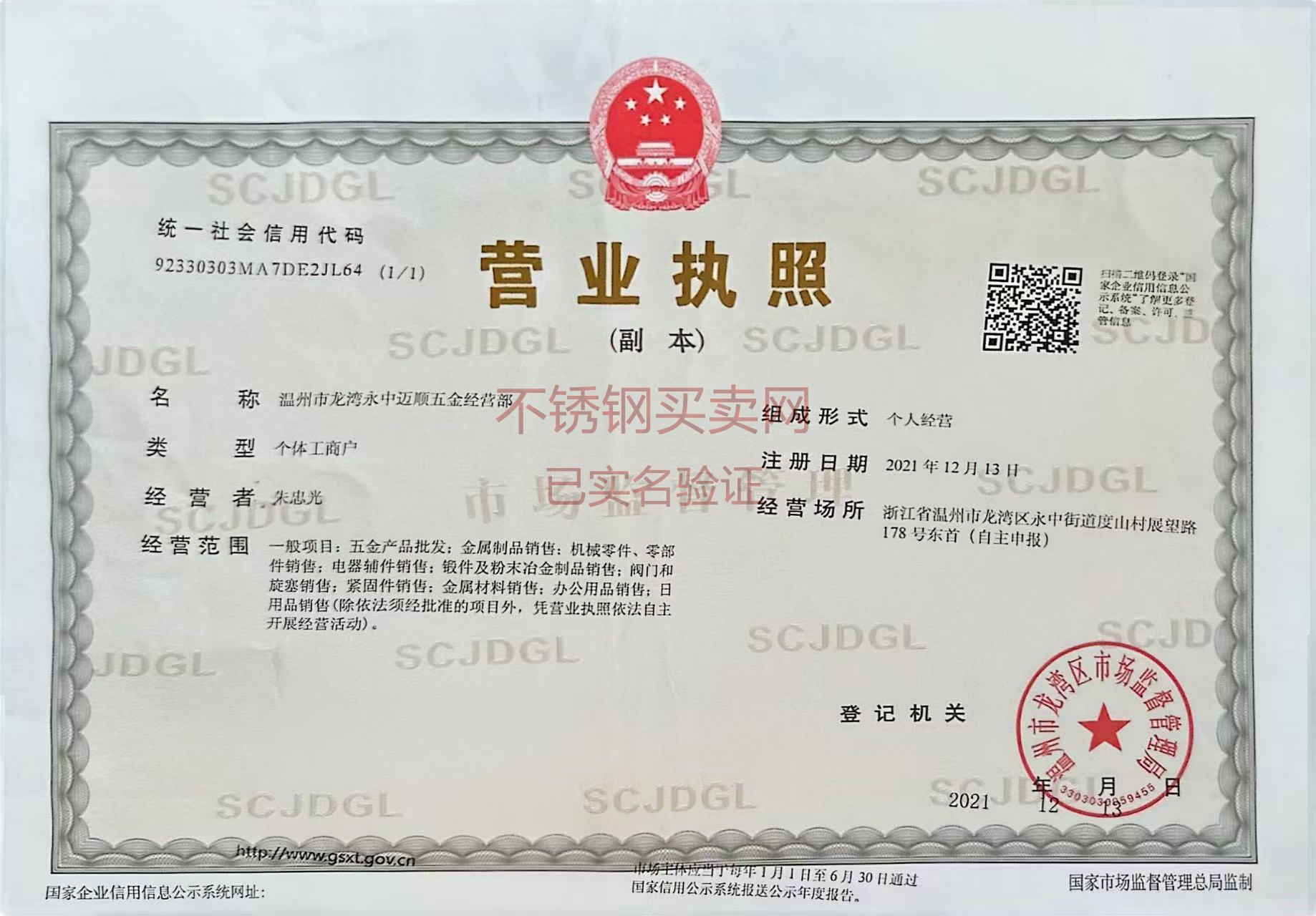 公司簡稱: 邁豐管件 營業執照: