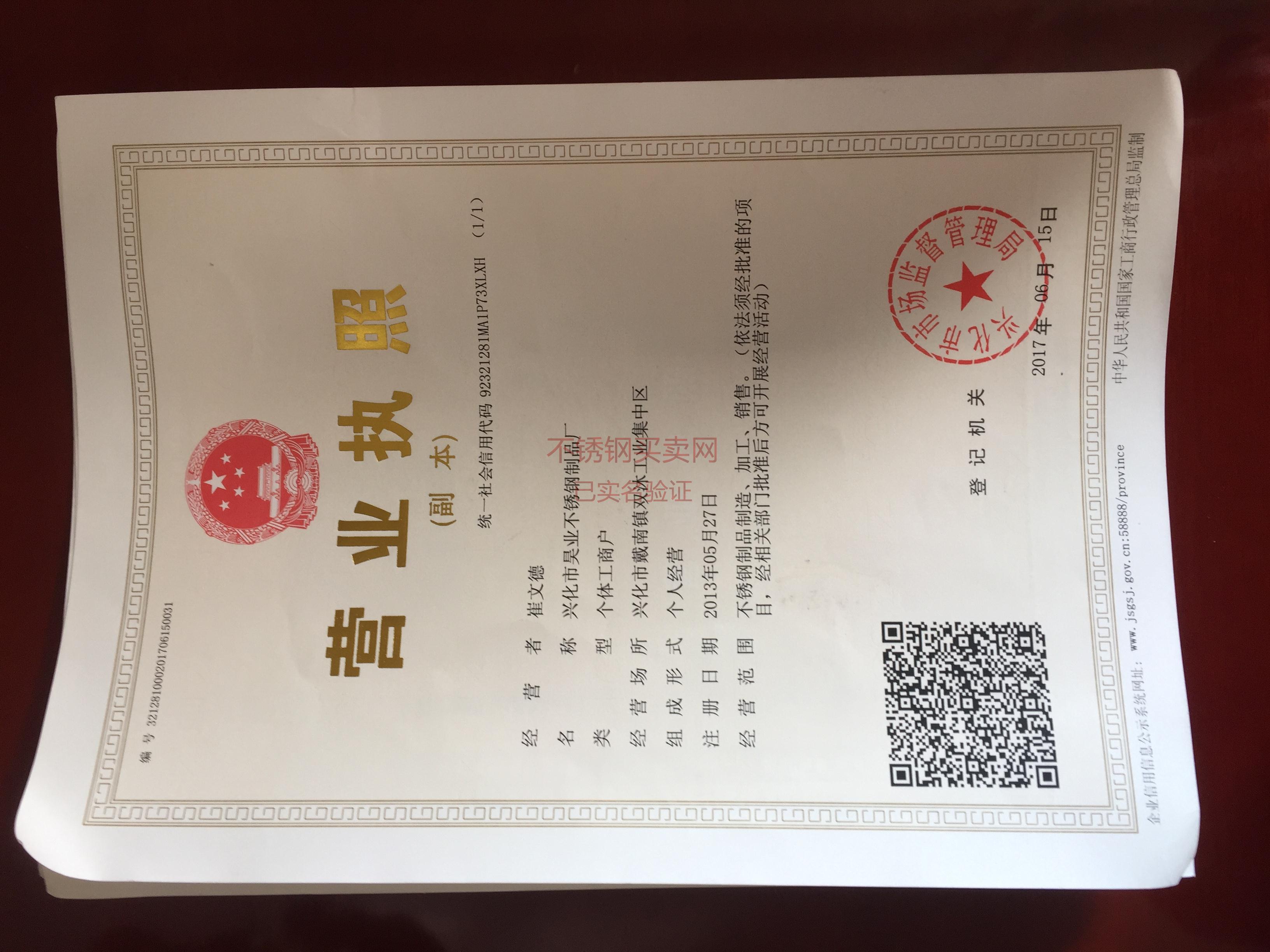 公司簡稱: 昊業不銹鋼 營業執照: