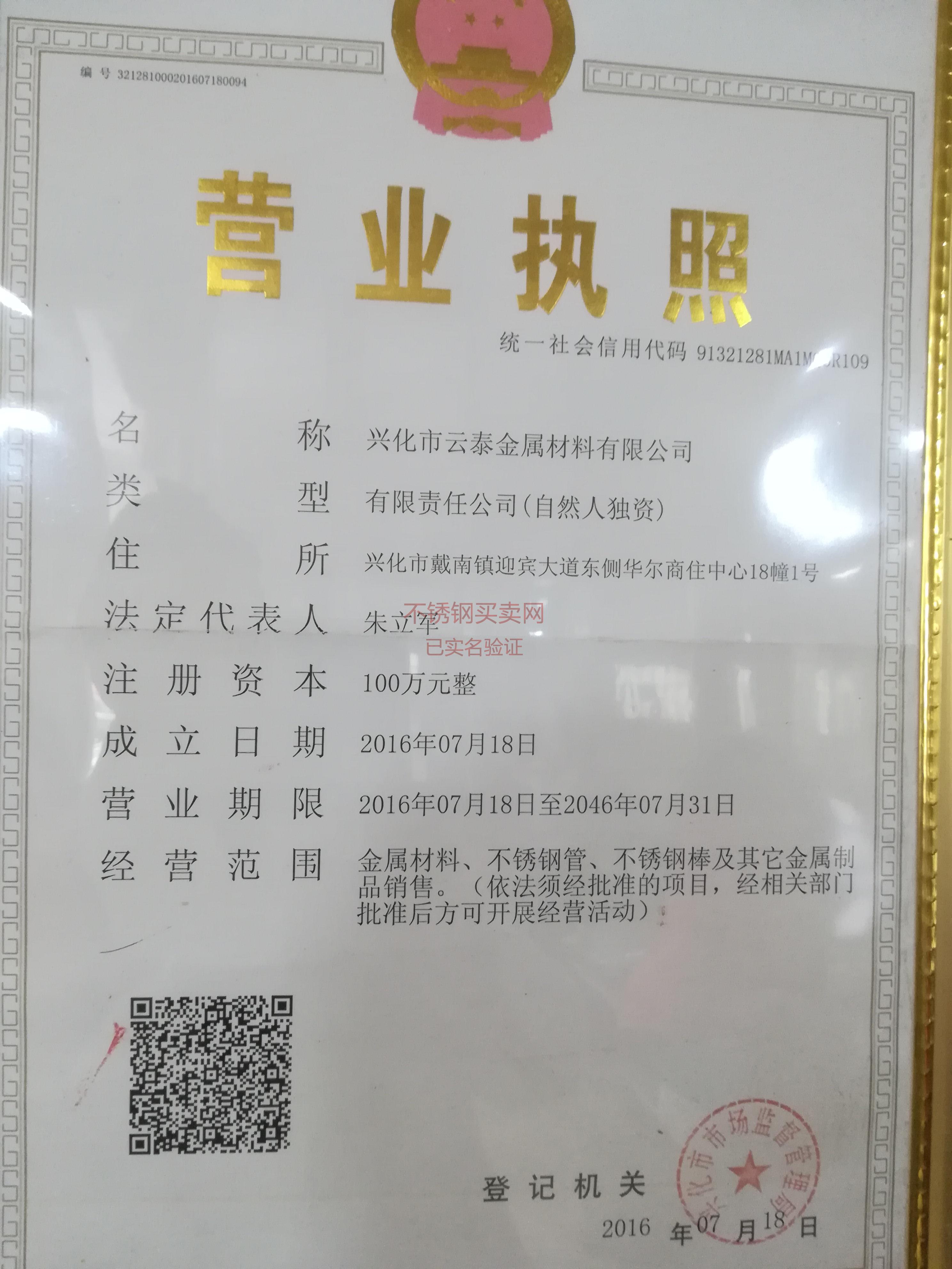 公司簡稱: 悅發特鋼 營業執照: