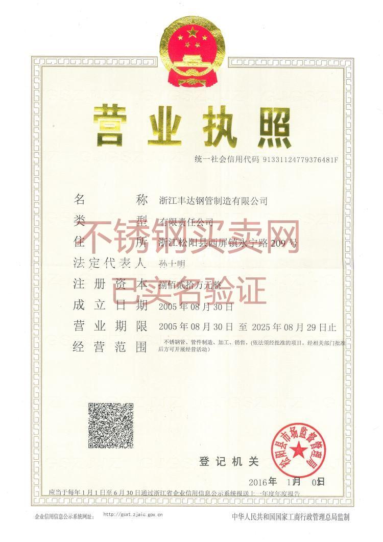 公司簡稱: 豐達鋼管 營業執照: