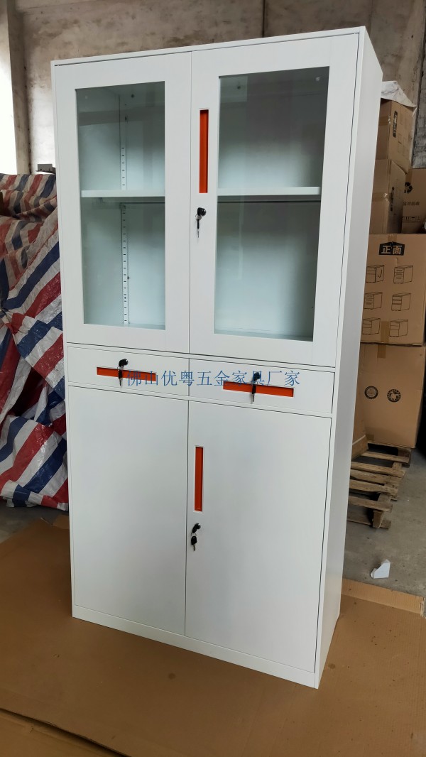 .材料:采用厚度0.5MM優冷軋鋼板,經剪切,沖壓,折彎,焊接,裝配而成。2.柜面:柜面采用的噴涂生產,高溫塑化而成,防腐性好,環保耐用,色彩柔和,光潔美觀。3.格板:文件柜格板,經過加強處理,堅固耐用,秉承性能好,可存放大量書籍等物均不變形。4.鎖具:精美的鎖具更使產品的氣度,安全系數保障良好。5.玻璃:玻璃采用浮法玻璃,透明度好,便于觀閱。6.抽屜:高強壓型抽屜,存儲量大,推拉順暢,造型精美,不同環境和不同用途。